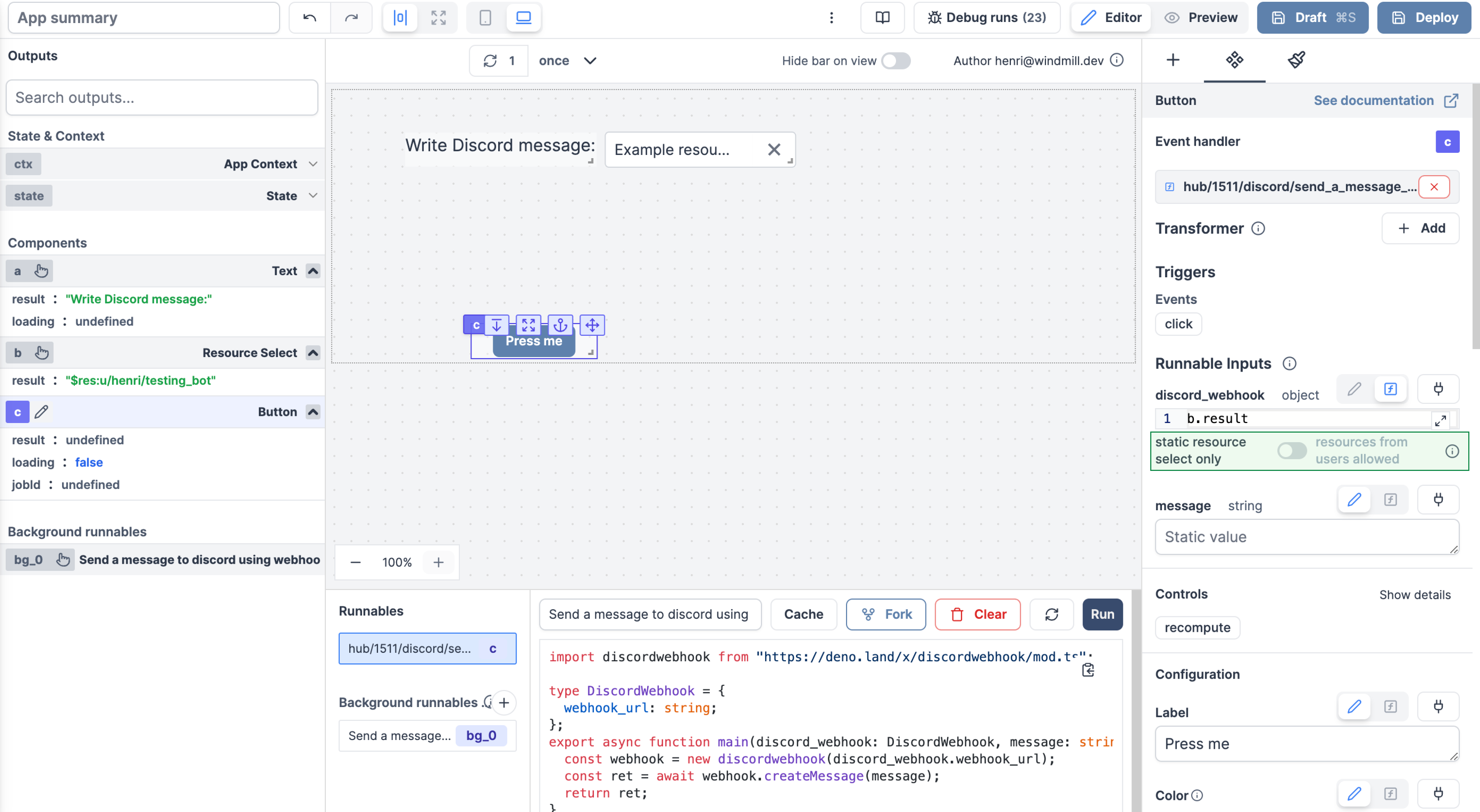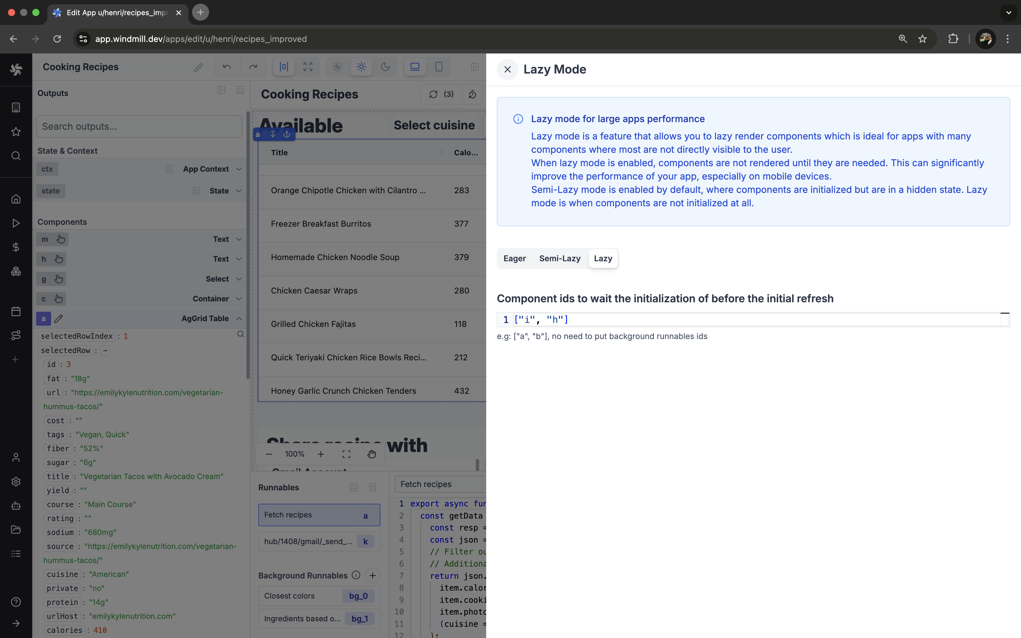 Write apps fully in code in React/Svelte with any libraries and see preview and code editor directly. If you like Lovable/v0.dev, you will love this since it is equivalent but much better integrated with Windmill backend flow/script/datatable capabilities.