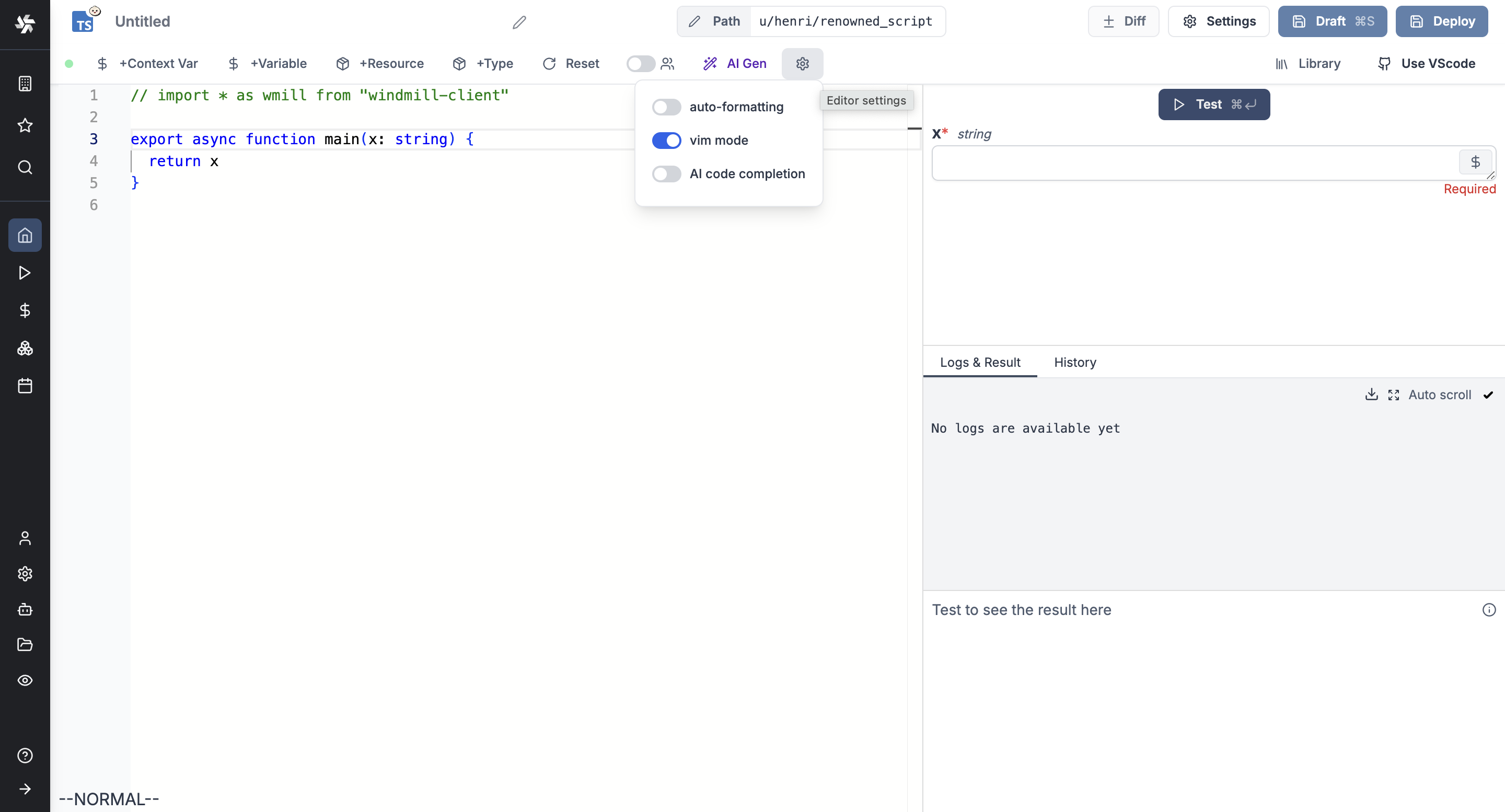 Windmill provides a true NodeJS compatibility mode using Bun. This means that you can run your existing NodeJS code without any modifications. Only comment //nodejs on the first line of your Bun script.
